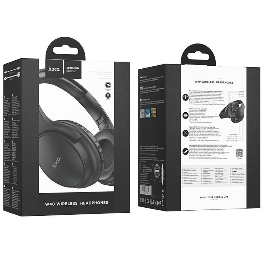 Гарнитура оснащена микрофоном и слотом для карты памяти. Это дает возможность сделать из наушников аудиоплеер mp3. Наушники беспроводные накладные компьютерные Hoco W40 поддерживают стабильную связь с устройством по беспроводной сети Bluetooth, не доставляя дискомфорт помехами. Динамики наушников имеют необычную форму, что выделяет устройство среди остальных и делает его уникальным в линейке наушников Hoco.