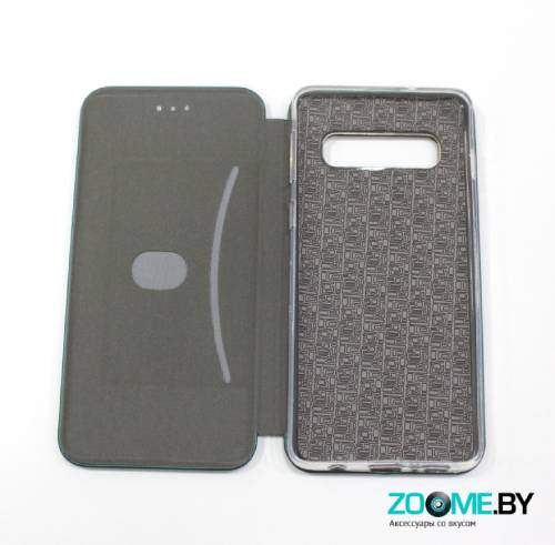 Чехол-книга для Samsung Galaxy S10 Plus зеленого цвета разработана специально для данной модели из высококачественных материалов. Устройства вставляется в силиконовую основу, которая плотно облегает телефон и обеспечивает полную защиту. В чехле предусмотрены все необходимые вырезы для кнопок и разъемов, что позволяет использовать устройства не вынимая телефон из чехла. Вырез под динамик позволяет вести разговор с закрытой крышкой.