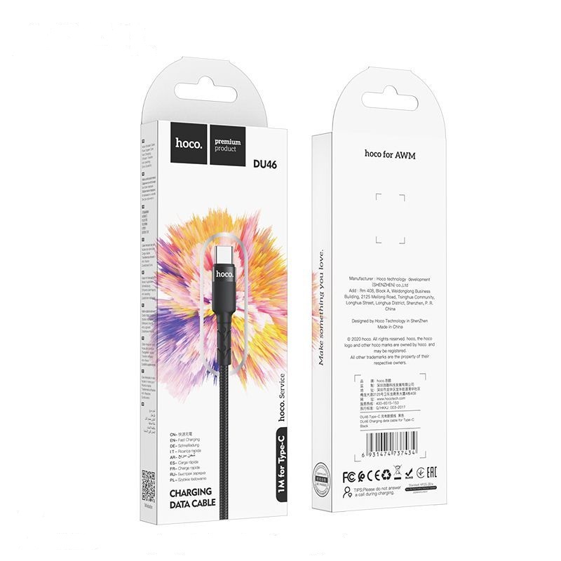 Кабель Hoco DU46 в нейлоновой оплетке. Материал разъема выполнен и прочного алюминия. Быстрая зарядка вашего устройства.