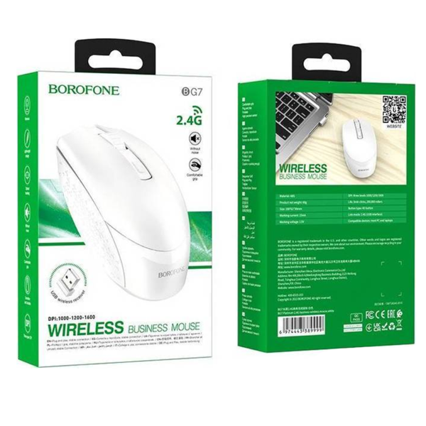 Мышь беспроводная Borofone BG7 - оптическая беспроводная мышь с датчиком высокой точности и бесшумными клавишами. Она универсальна и совместима с большинством устройств. Стильный дизайн и простота в обращении делают данное устройство незаменимым помощником при работе с компьютером или ноутбуком.