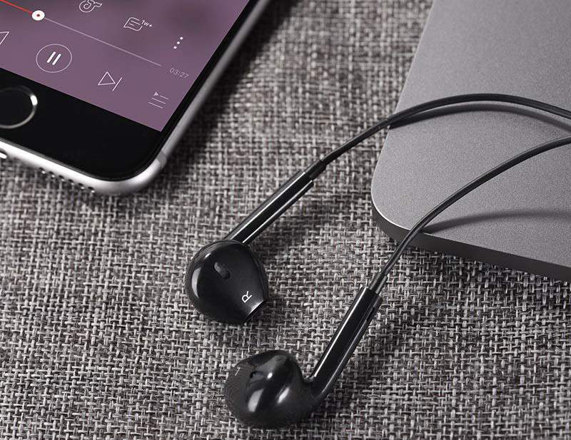Наушники проводные Hoco "M55" черного цвета Memory sound универсальные наушники с микрофоном 3.5мм коннектор эластичный кабель 1.2м и одна кнопка управления.
