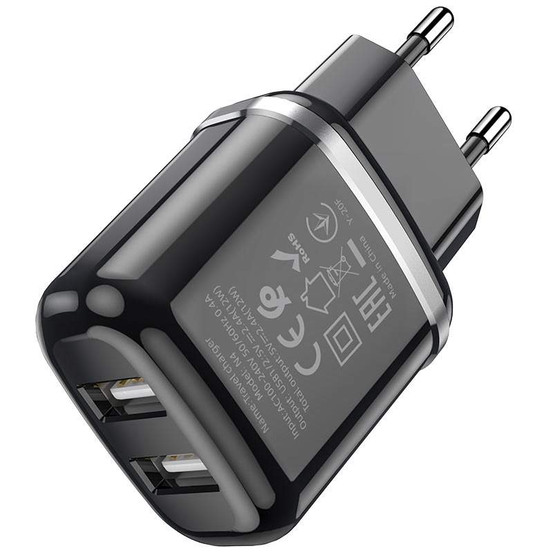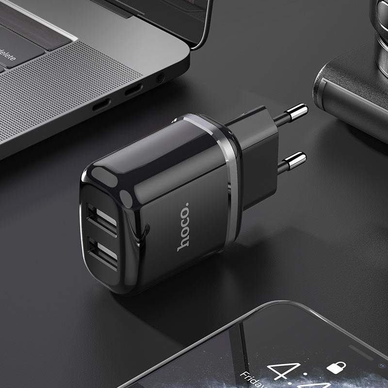 Мы рады предложить Вам Hoco N4 Aspiring зарядное устройство с двумя USB выходами 2.4A, EU штекер, набор с кабелем для Lightning / Type-C / Micro-USB.